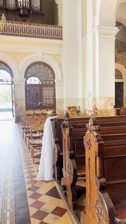 The church features traditional Gothic Revival architecture, with elements such as a striking facade, tall spires, and intricate stained-glass windows. The interior often includes beautiful altars, religious artwork, and statues, creating a serene and inspirational environment fo