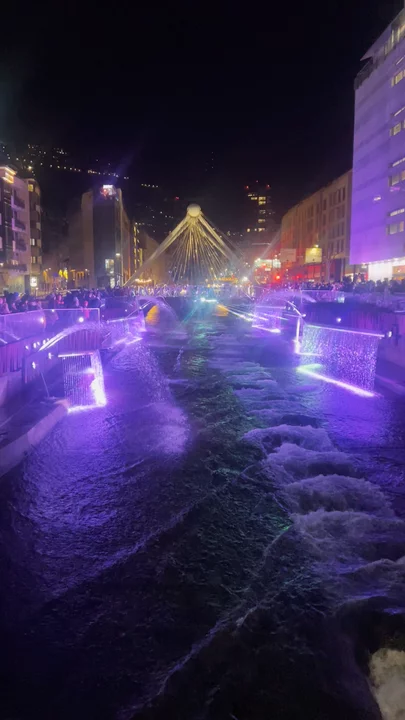 A beautiful light show. A truly beautiful visual spectacle that's well worth seeing if you're visiting Andorra. Although it's short, it's well-designed and divided into two parts: the first, calmer and more relaxing; and the second, more lively and dynamic.