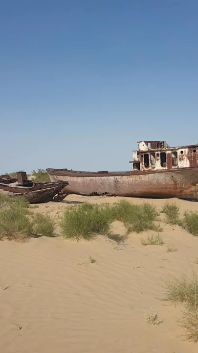 Rusty ships in the sand of Aral