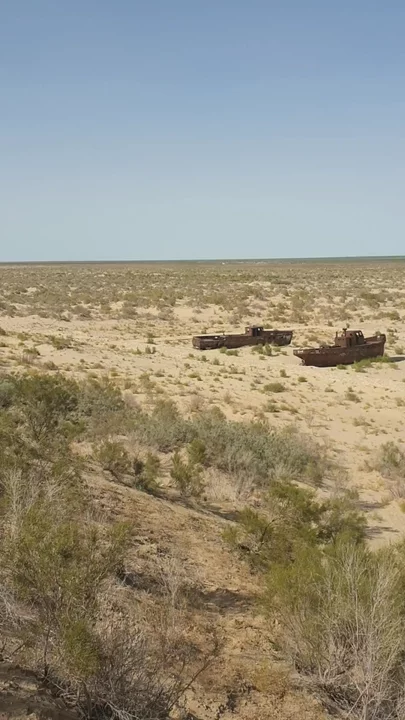 Rusty ships in the sand of Aral